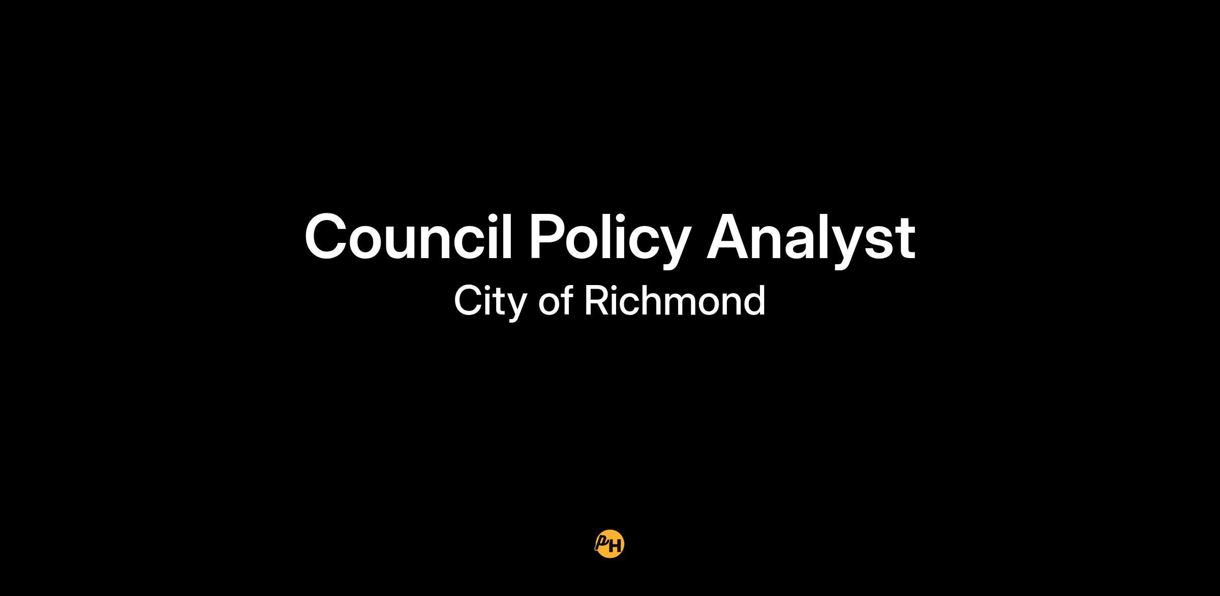 The Richmond City Council Office of the Council Chief of Staff is seeking highly qualified candidates for consideration to fill the position of Management Analyst, Principal (Council Policy Analyst). The incumbent is responsible for providing support to Richmond City Council relative to the focus areas of public policy and budget development. To be successful in this role, the incumbent should have a skillful command and expertise of navigating the operations of a municipal government with the expectation they will be intricate in shaping policy and evaluating the effectiveness of programs.