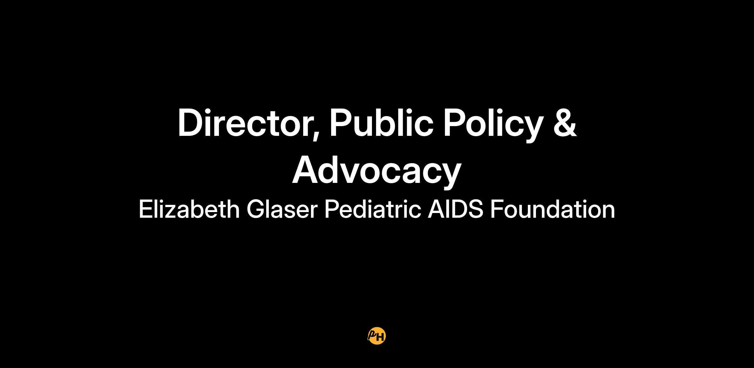 The Director of Public Policy & Advocacy will provide strategic leadership to elevate and expand the Foundation’s national policy and advocacy presence, serving as a senior advocate and thought leader in advancing the Foundation’s mission. This role will drive high-level engagement with U.S. policymakers and stakeholders to champion key priorities—including the elimination of pediatric HIV and AIDS, addressing childhood tuberculosis, sustaining a robust U.S. global HIV response, and advancing other core elements of EGPAF’s strategic agenda.