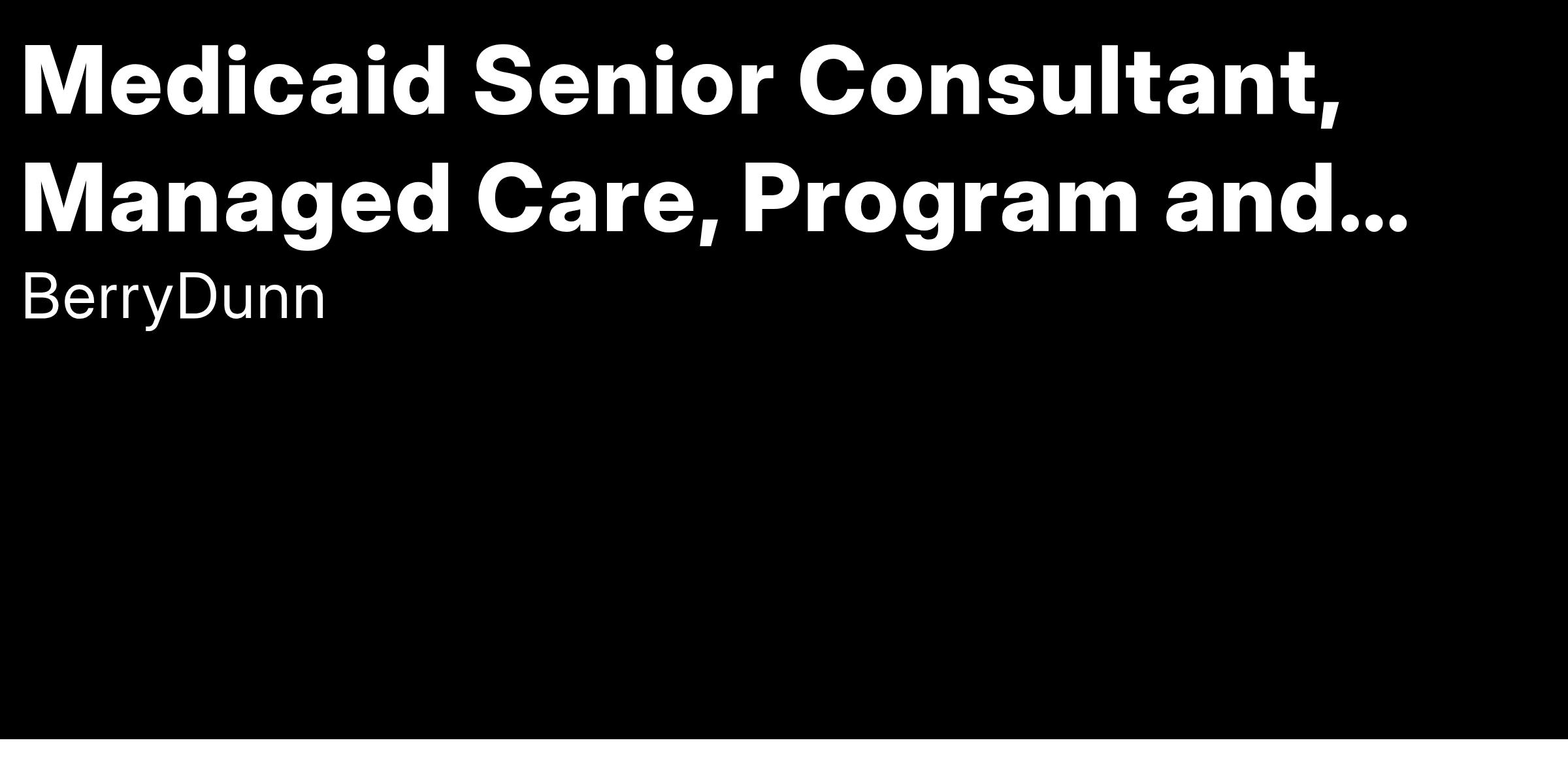 Join BerryDunn’s growing Medicaid managed care, program and policy team! In this role, you will have an opportunity to find innovative solutions to strengthening our client’s Medicaid managed care programs. BerryDunn’s Medicaid Practice Group is seeking a Medicaid Senior Consultant, Managed Care, Program and Policy who has experience working at one or a combination of 1) a consulting firm supporting state Medicaid agencies, 2) a managed care organization (MCO), and/or (3) a state Medicaid or health and human services agency.