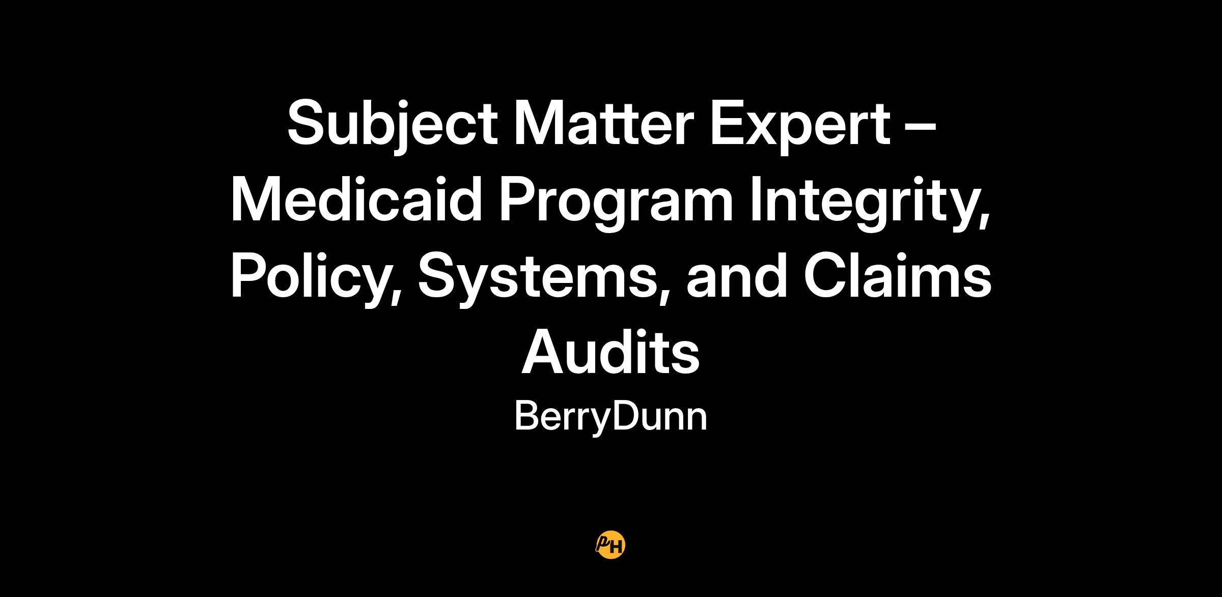 BerryDunn is seeking an individual with subject matter expertise in Medicaid program integrity policy, Medicaid enterprise systems, and claims audits to assist clients with prevention and detection of fraud, waste, and abuse. This individual will be responsible for assisting with the interpretation and application of Medicaid policy, supporting Medicaid agencies with system implementations and upgrades, and conducting Medicaid medical, dental, behavioral health, and pharmacy claims audits.